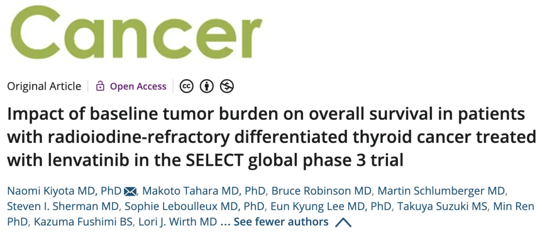 原文出处:Eisai Announces Real-World Evidence on the Clinical Effectiveness of LENVIMA? (lenvatinib) Monotherapy for the Treatment of Patients with Radioiodine-Refractory Differentiated Thyroid Cancer
